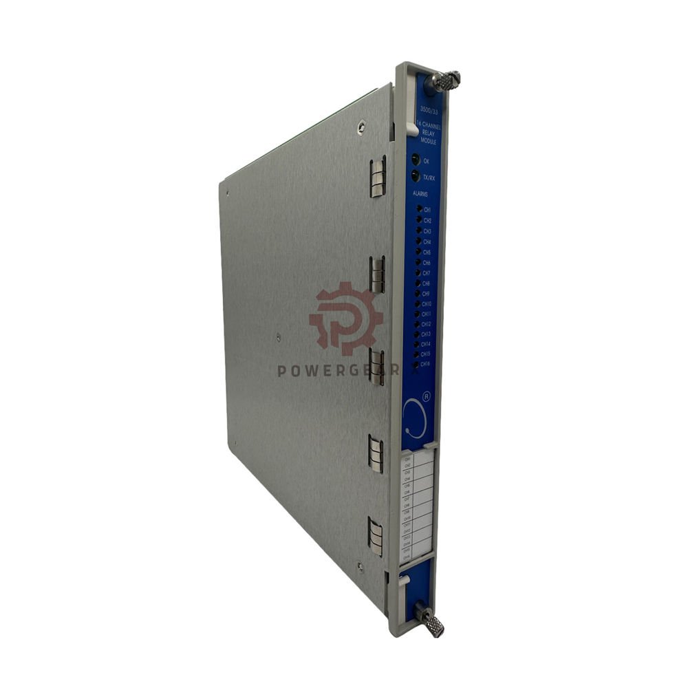 3500/33-01-01 is a 16-channel relay output module. It is part of the 3500/33 rack system. It gives multi-channel relay outputs for alarms and trip logic. Built in the U.S.A. and made for stable rack use.