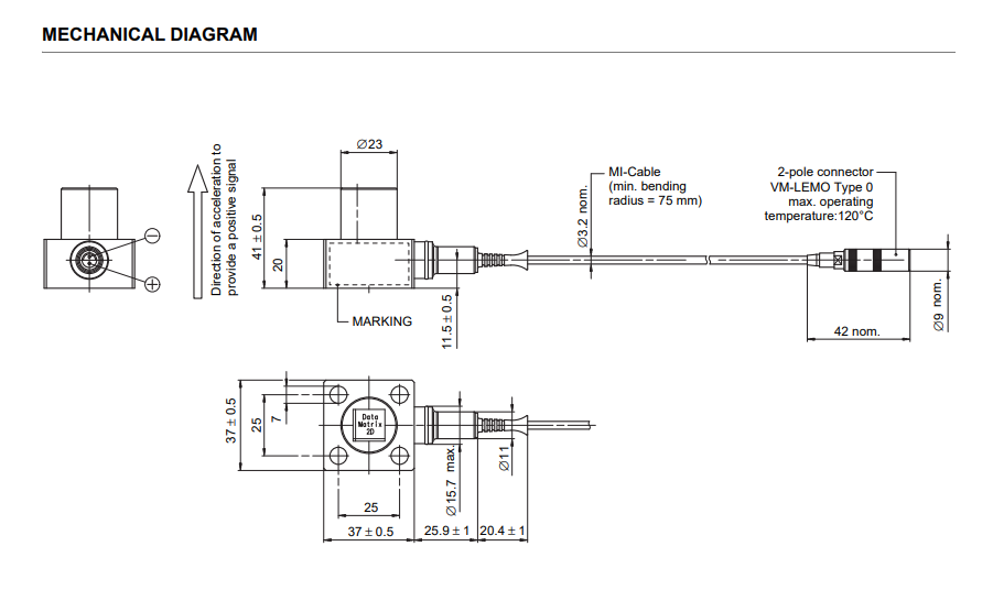 - Sensitivity: 10 pC/g ±5% at 120 Hz